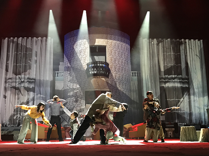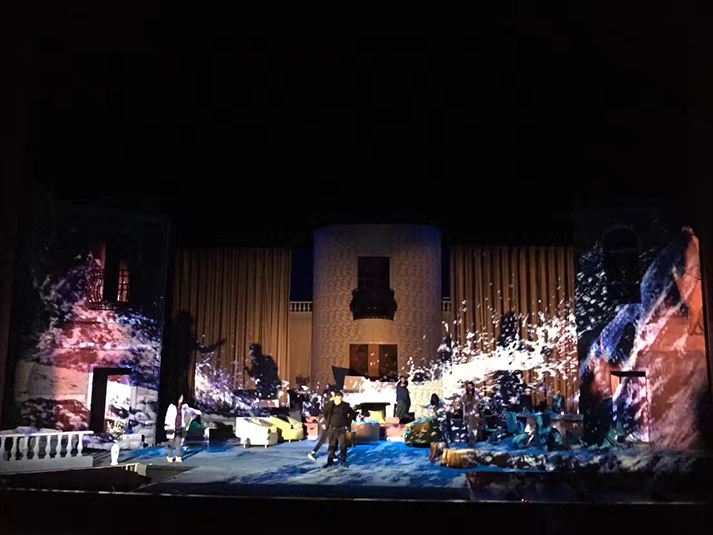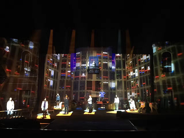 該劇有對(duì)人物靈魂的拷問、對(duì)人性的追問,也有對(duì)生命意義的表達(dá),在雄渾凝重的燈光設(shè)計(jì)風(fēng)格上,著重呈現(xiàn)劇目的人物塑造。該劇中,LED切割燈GL-6和LED圖案燈GL-5,承擔(dān)了劇目面光和舞臺(tái)特效的作用,憑借高亮度、均勻的光斑、全面的功能和穩(wěn)定的運(yùn)轉(zhuǎn),成功為該劇護(hù)航。尤其是LED燈具在調(diào)光、頻閃上更加細(xì)膩線性的表現(xiàn),有助于劇情傳達(dá)更加微妙細(xì)致的情感。另外,天幕燈C5的八色混色,讓色域?qū)拸V、換色細(xì)膩,投光式渲染法使得效果均勻自然、一致性高,渲染劇場(chǎng)氣氛。
