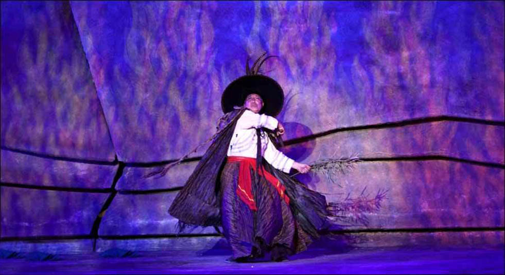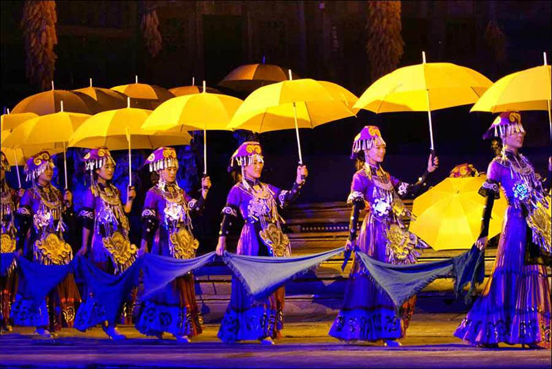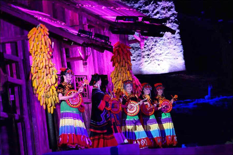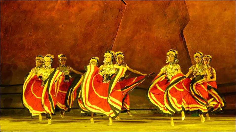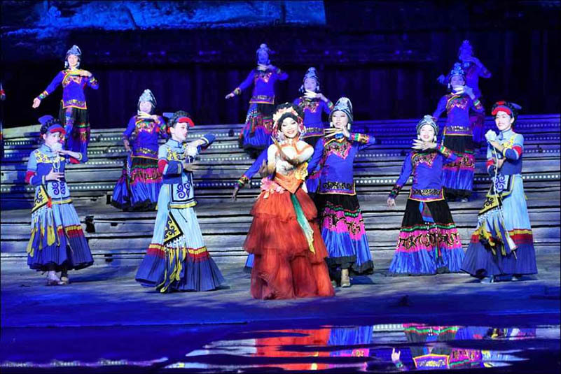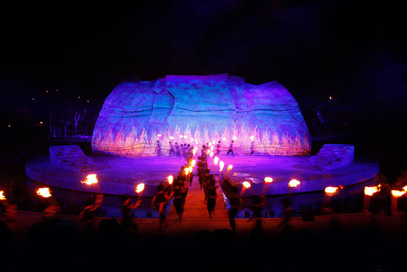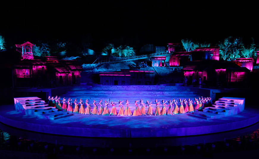 《阿惹妞》是目前中國第一臺(tái)火秀實(shí)景劇,該劇全長60分鐘,共分為5個(gè)篇章,從民族源起的腳步展開,講述了阿惹妞情與愛的生命畫卷。該劇以“火”作為彝族的生命圖騰貫穿始終,呈現(xiàn)了“火”作為一個(gè)民族情感的載體而展開的生命傳奇,具有濃厚的彝族文化風(fēng)情。