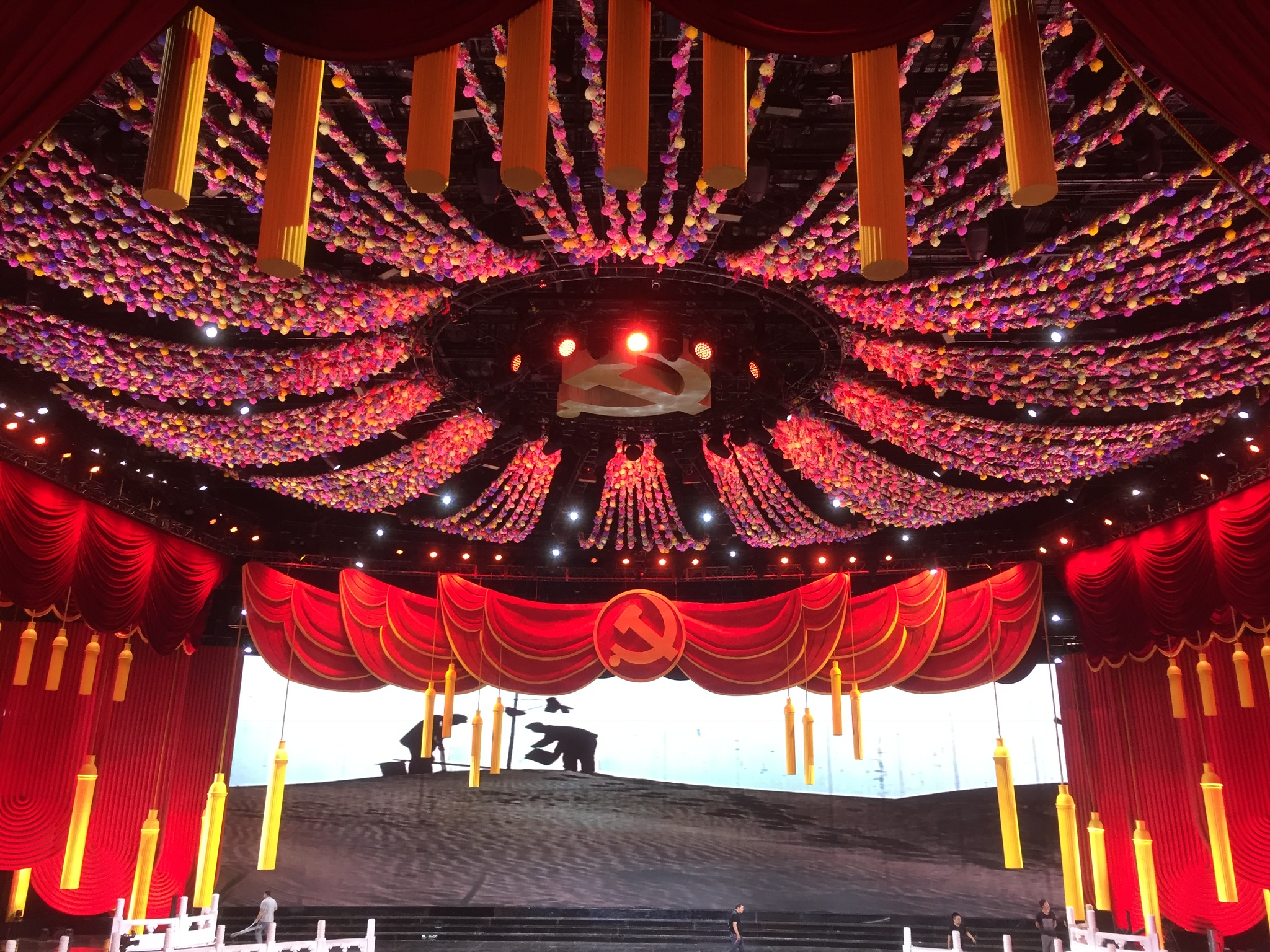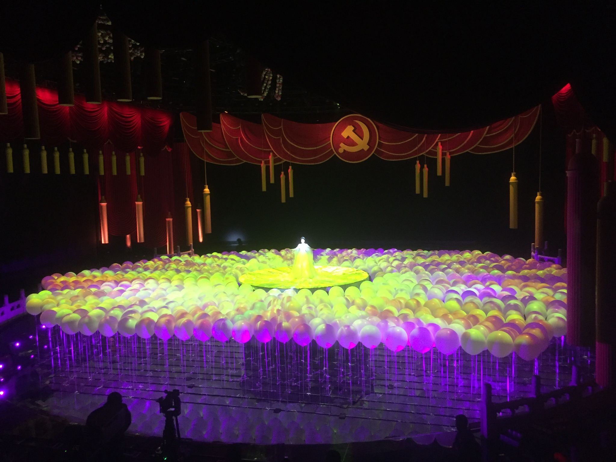 第二,為了突顯宏大的場面,節(jié)目總導(dǎo)演在節(jié)目形式上和單個(gè)節(jié)目的表演人數(shù)、道具使用量上都比常規(guī)晚會投入更大,這樣就沒有太多舞臺空間去做合適燈位,但卻要承載如此多的照明需求,這對整個(gè)燈光亮度、色彩還原以及光比,和舞臺氣氛的把控是一次非常大的挑戰(zhàn)。