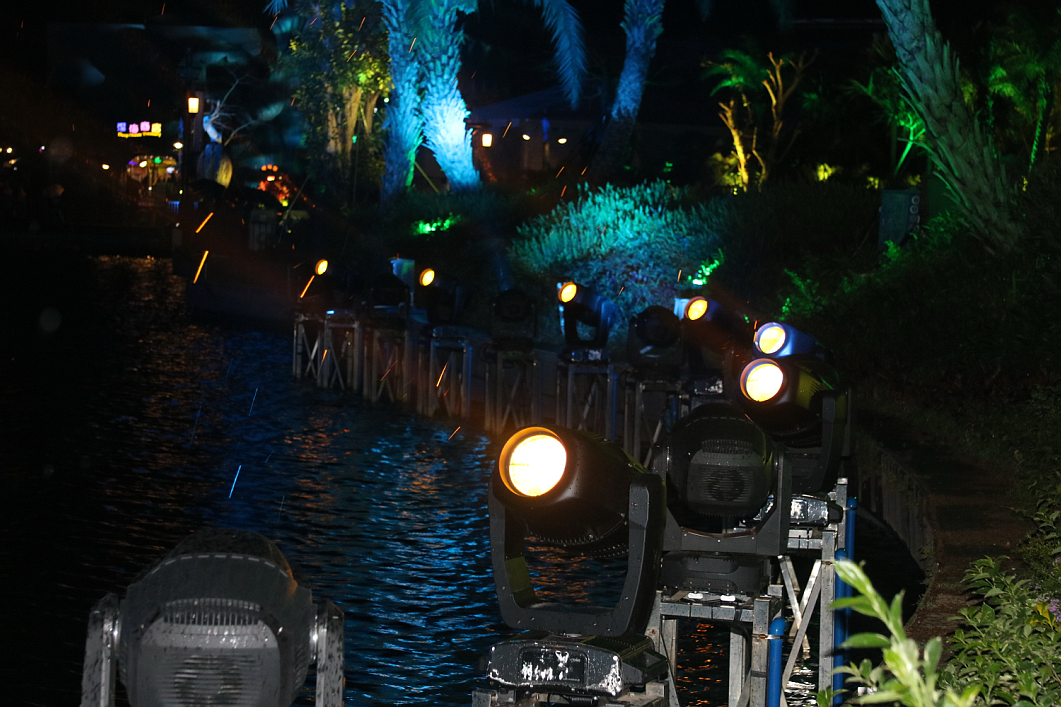 在此次改造升級選用燈光設(shè)備中,浩洋電子從國內(nèi)多家燈光企業(yè)的激烈角逐中脫穎而出,“天外飛燈-FOS360”系統(tǒng)、IP65三合一全能王G20HYBRID IP等燈具最終被選定,遍布在長隆海洋王國的中心湖、鯨鯊廣場等,以科技點(diǎn)亮這一場全新的大型夜場匯演,用炫酷的燈光效果與煙花匯演精彩地結(jié)合在一起。