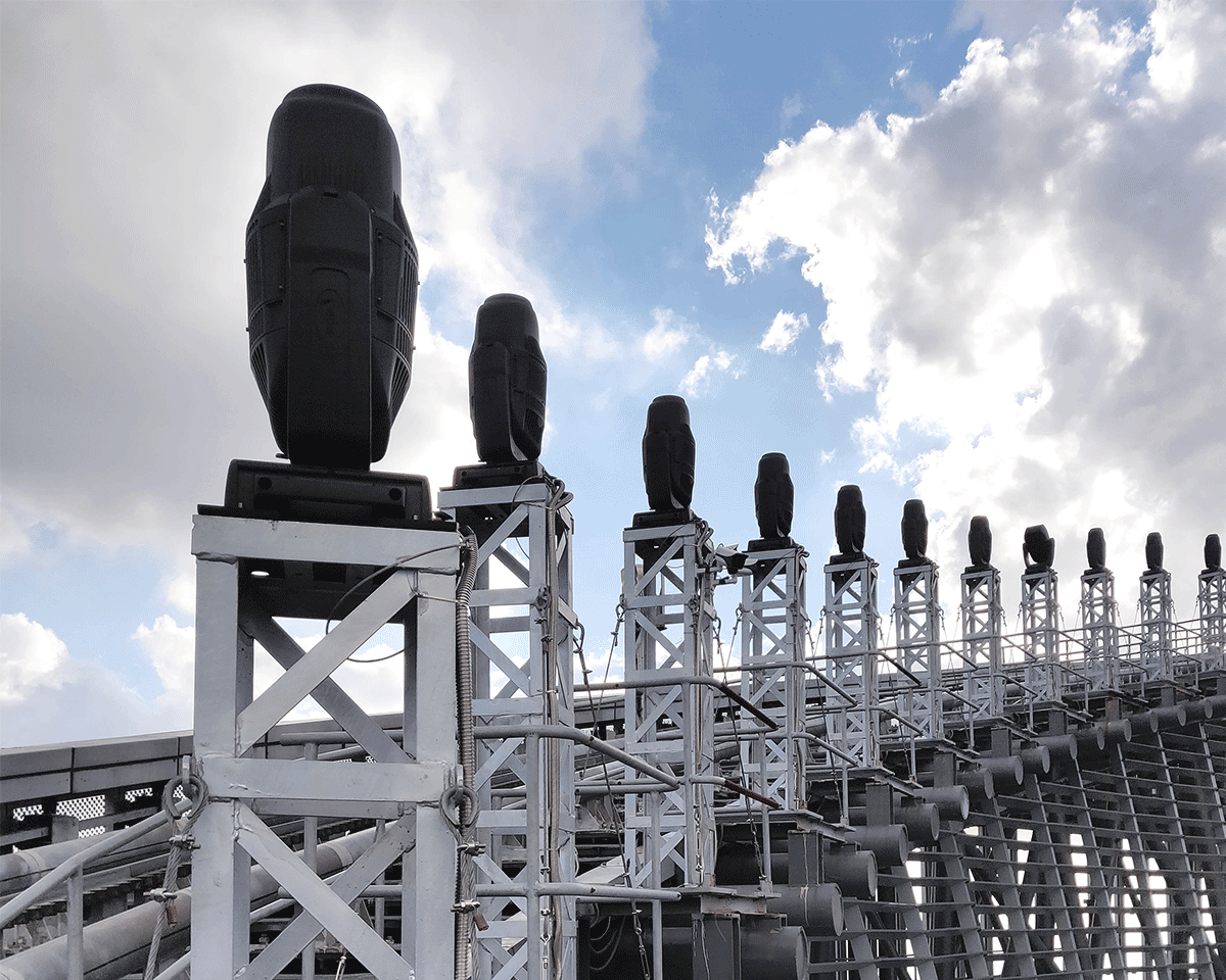 在創(chuàng)意設(shè)計(jì)方面,改造團(tuán)隊(duì)除了根據(jù)上海中心大廈的建筑特點(diǎn),進(jìn)行藝術(shù)燈光的優(yōu)化設(shè)計(jì)和更新燈具設(shè)備外,還實(shí)施了三層設(shè)備層光束,在大廈避難層擦窗機(jī)軌道處設(shè)計(jì)鋼結(jié)構(gòu)燈具設(shè)備升降收縮架,使演繹時(shí)改結(jié)構(gòu)設(shè)備可收縮隱藏與升出,靈活操作。