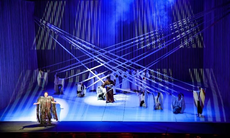 與一般的歌劇戲劇結(jié)構(gòu)方式有所不同,歌劇《鑒真東渡》有著不拘泥情節(jié)意識流般的戲劇鋪陳,通過多元的音樂并列和抽象的舞臺寫意呈現(xiàn),著力渲染表達(dá)鑒真內(nèi)心的情感波濤和人生理念。