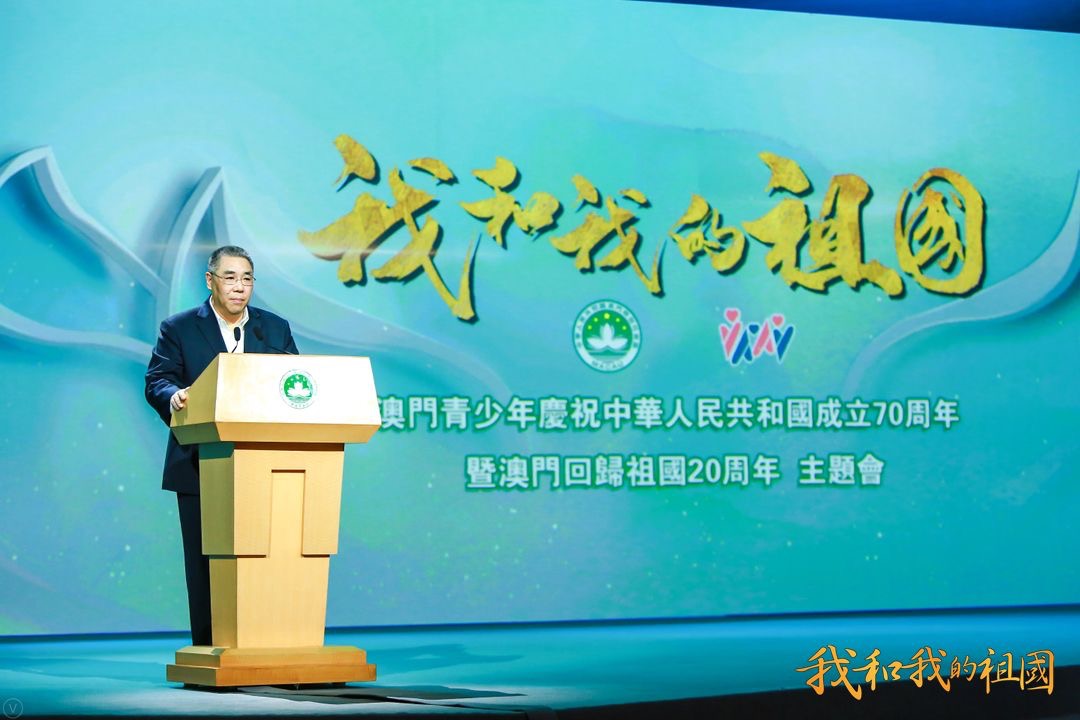 8月3日下午, 為慶祝中華人民共和國(guó)成立70周年和澳門回歸祖國(guó)20周年,由澳門特別行政區(qū)政府、中央人民政府駐澳門特別行政區(qū)聯(lián)絡(luò)辦公室、澳門各界青年組織活動(dòng)籌備委員會(huì)聯(lián)合主辦,教育部、中華全國(guó)青年聯(lián)合會(huì)共同協(xié)辦的以“我和我的祖國(guó)主題會(huì)”在澳門綜藝館舉行。