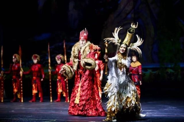 演出中的很多形象都有著東西方文化的雙重印記。主人公的形象既能讓觀眾聯(lián)想到孫悟空也帶著西方傳統(tǒng)神話(huà)的人物印記。劇中有東西方兩個(gè)王國(guó),西方的是以龍和紅色元素來(lái)代表,而東方的則以鳳凰和金色元素來(lái)代表。