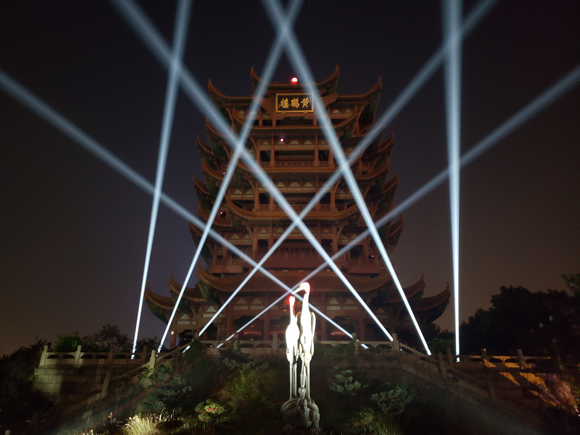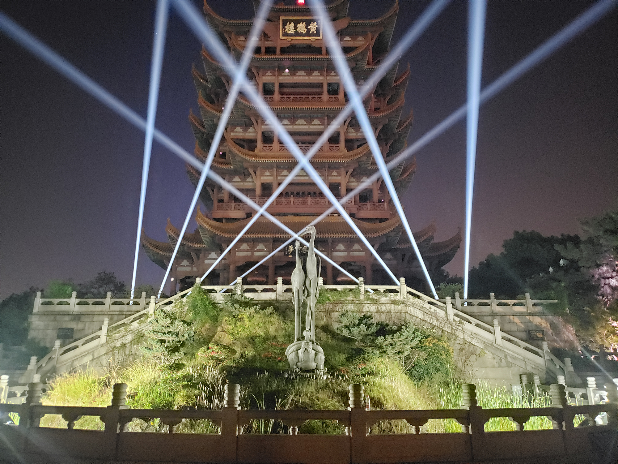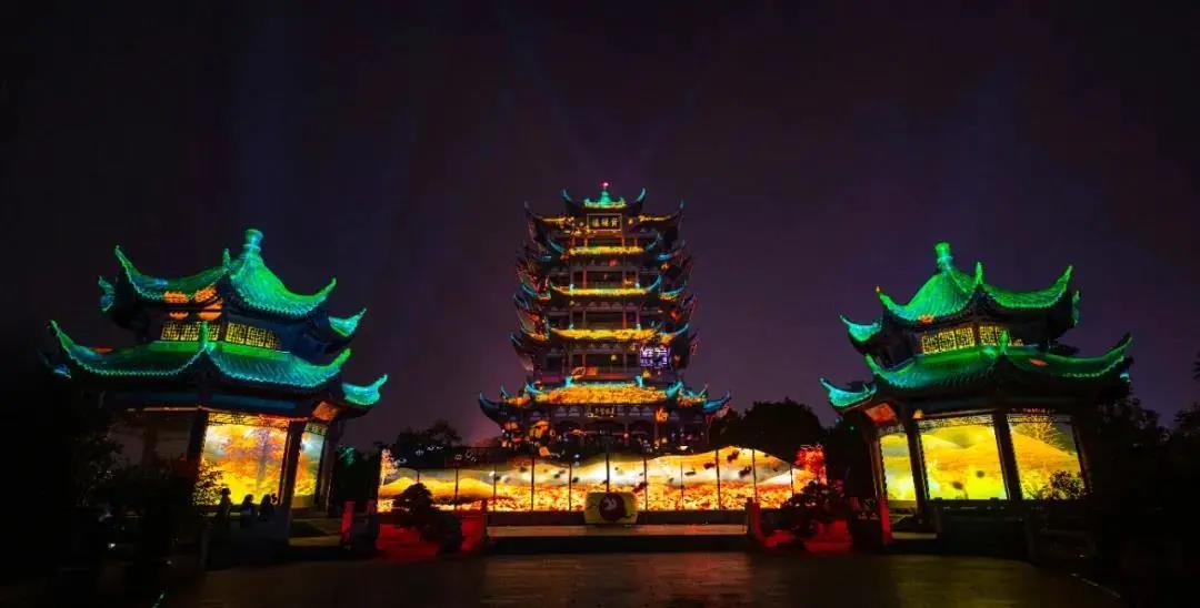 夜幕下的黃鶴樓,曾讓無數(shù)文人騷客觸景生情、以景抒懷、借景言志。如今,作為武漢地標,黃鶴樓又添新的科技元素?!兑股宵S鶴樓》以黃鶴樓公園為載體,圍繞特有的歷史文化,采用聲、光、電、舞、美、化結(jié)合的手法,通過高科技光影技術(shù),打造“夜武漢”新的地標。