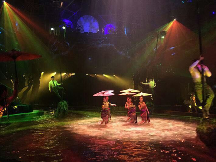 傣秀不僅是一臺充滿藝術(shù)想象力的舞臺表演秀,其間的各種奇幻、炫酷的燈光設(shè)計,也讓傣秀變成了一場高、精、尖科技匯演的集成大觀!