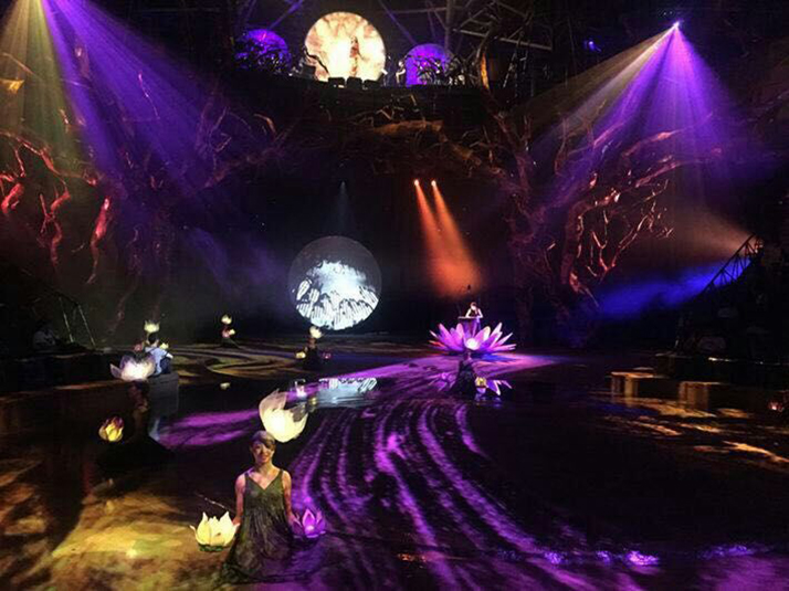 浩洋電子搖頭染色燈PT330W外形輕巧,光斑角度小,具有光斑均勻、色彩柔和細(xì)膩等特點,曾在張惠妹2015烏托邦世界巡城演唱會和Katy Perry棱鏡中國首秀中有過精彩表現(xiàn)。在傣秀舞臺上配合浩洋電子另一款大功率搖頭染色燈V2000W,共同烘托出奇幻、絢爛的視覺效果。