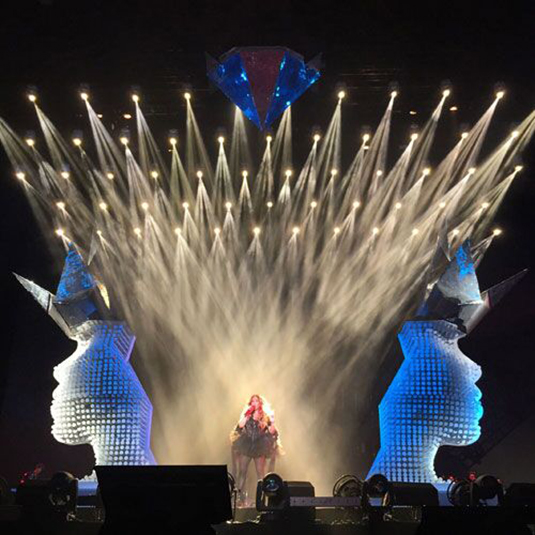 一向?qū)σ魳酚兄鴺O致要求的張惠妹團隊,在「烏托邦世界巡城演唱會」中,更是投重金打造世界級硬件設(shè)備及舞臺道具。作為打造演唱會燈光效果的主力武器,浩洋電子轟天炮G10B憑借全球頂級的高亮度輸出特性、銳利的光束和完美的棱鏡效果,為“烏托邦”現(xiàn)場營造了時而狂野,時而歡樂的舞臺氛圍。而浩洋電子另一款小體積、長壽命的染色燈PT330W,也用柔和細膩的CMY均勻渲染效果,令現(xiàn)場似烈果繽紛、如沐幻境。在燈光師的詮釋之下,二者光束與染色交融演繹,使整個巡演舞臺呈現(xiàn)出靈動、華麗的光影視覺,讓歌迷獲得極具沖擊力的感官體驗。數(shù)十場演出下來,由浩洋燈光營造的超震撼視覺效果,無疑成為「張惠妹2015烏托邦世界巡城演唱會」的最大亮點之一。