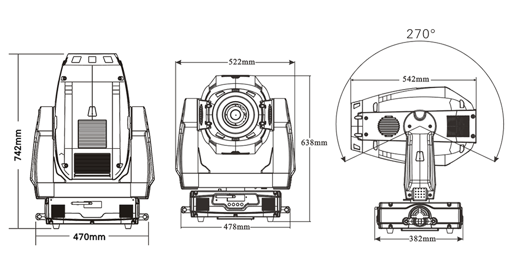 可從控臺完成更改DMX地址碼,遙控開關(guān)燈泡,機器重設(shè),聲控模式的轉(zhuǎn)換等功能