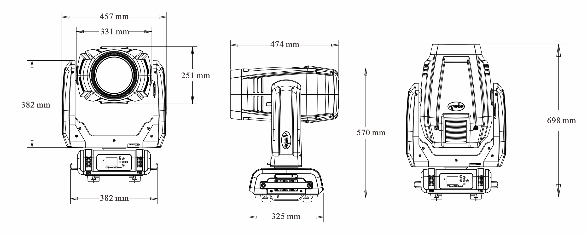 變焦范圍:光束模式:2°-24°,圖案模式:2.5°-32°,染色模式:4°-34°