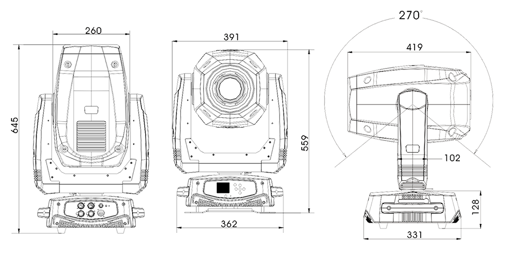 可從控臺完成更改DMX地址碼,遙控開關(guān)燈泡,機器重設(shè),聲控模式的轉(zhuǎn)換等功能