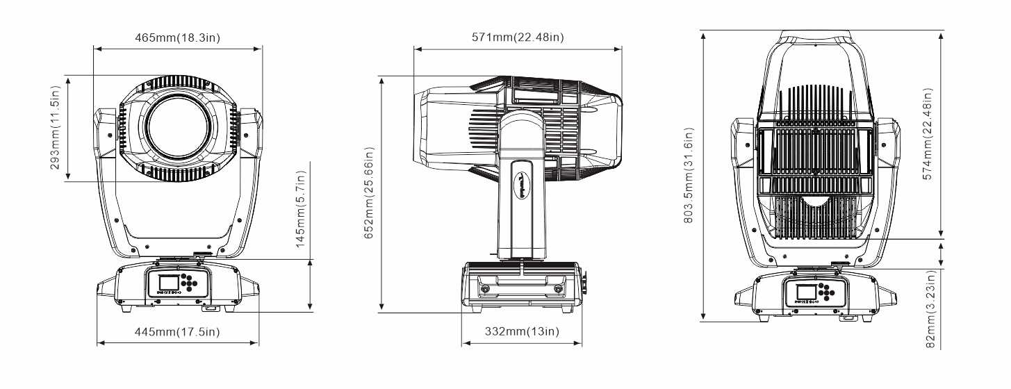 變焦范圍:光束模式:2.5°-29°;圖案模式:3°-34°;染色模式:4°-39°