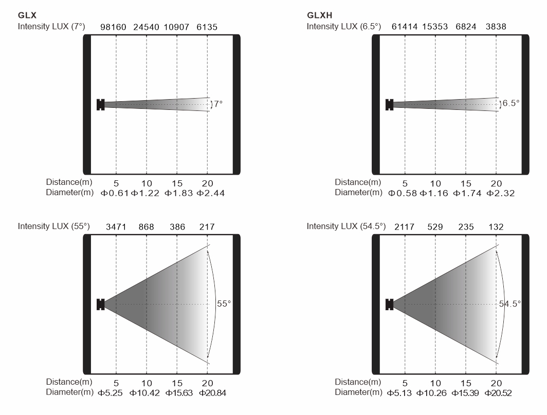 變焦范圍:7°- 55°(GLX), 6.5-54.5(GLXH)
