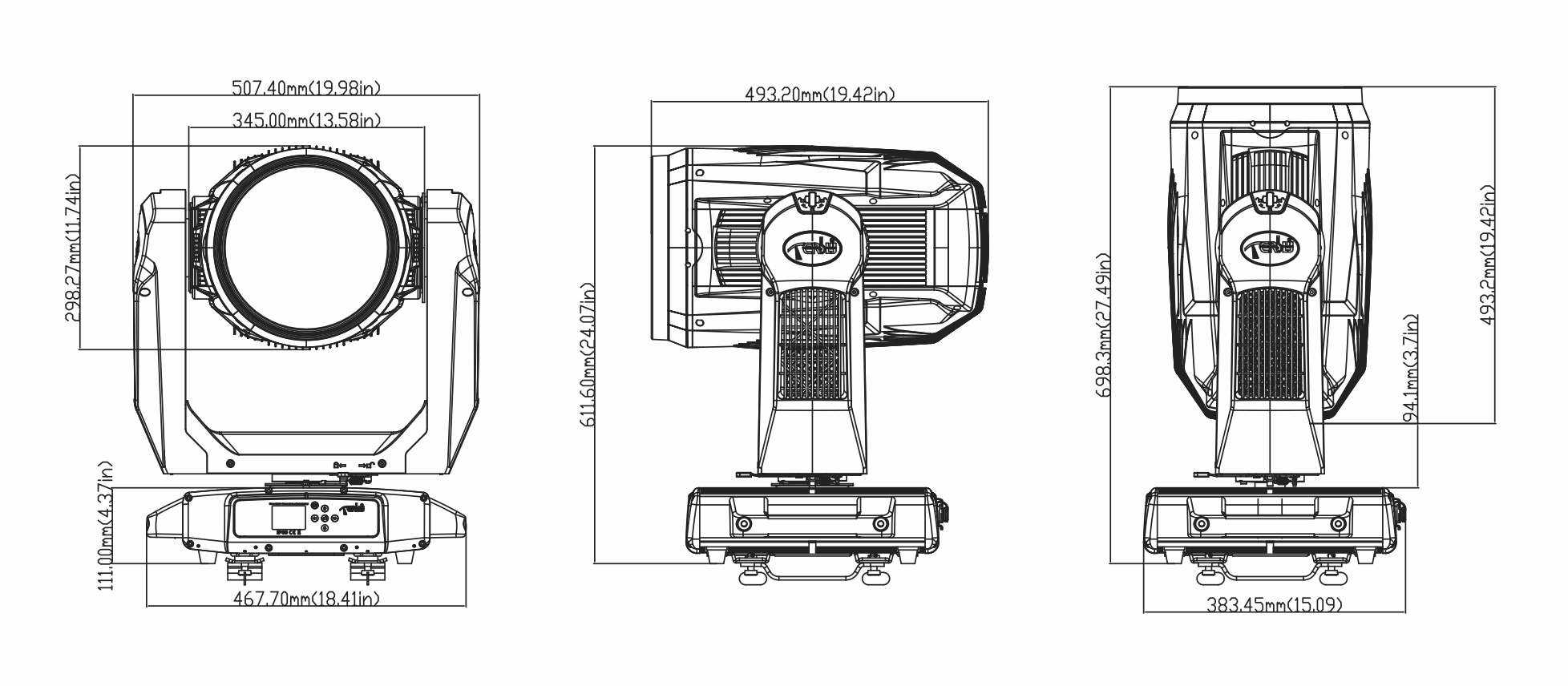 可從控臺完成更改DMX地址碼,機器重設(shè)等功能