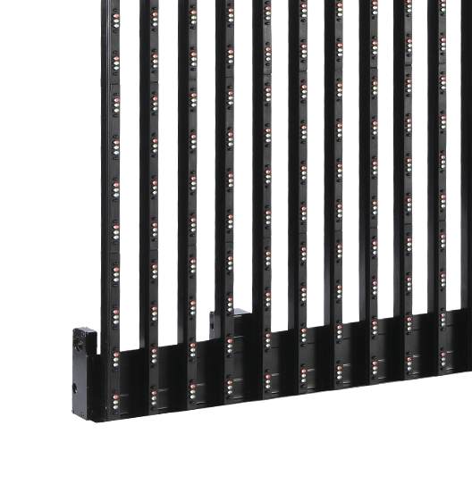 “條屏”系列LED顯示屏利用框架結(jié)構(gòu),把頂部拉條、底部拉條、中心電源盒及LED燈條緊密的連結(jié)在一起。這樣的結(jié)構(gòu)設(shè)計可以實現(xiàn)快速、方便的前后雙面安裝及維護。